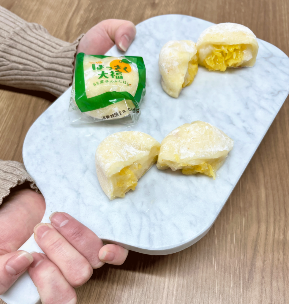 甘酸っぱい八朔と白あん、それをみかん餅で包んだなんとも魅力的な大福です😄