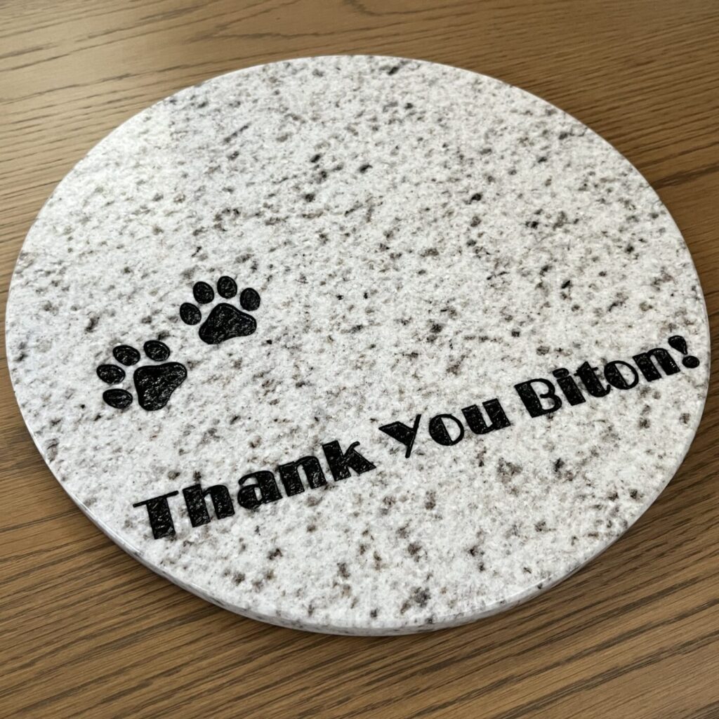 大切な家族だったペットの供養のために、Éclatさんの丸い石材プレートを選びました。
